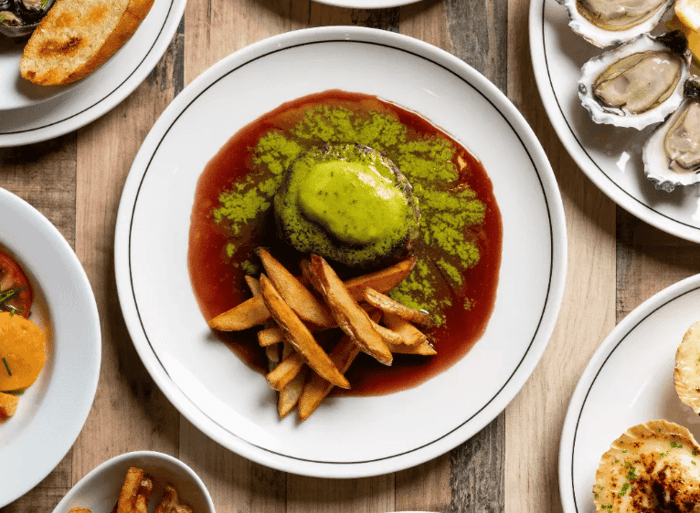 Tucked inside the historic Old Rum Store, Gavroche feels like stepping into a Parisian brasserie. Their steak frites is a standout, served with traditional sauces and the option to upgrade your fries with truffle or parmesan for an indulgent twist.